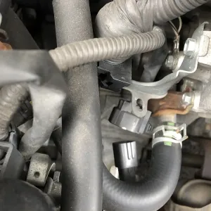 - O2センサーのカプラーを外す 潤滑剤を染み込ませている間に、O2センサーの配線ケーブルを外しておきます。 カプラーで接続されているので、カプラーの爪の引っかかりを外すように意識しながら引っ張ると外れます。 今回は2本とも交換なので2つ外します。