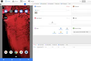 adb connect 192.168.100.193:7401shAppsの項目の設定アイコンを押すと端末の設定画面が直接開けたりと他にも便利な機能がいろいろとあります。